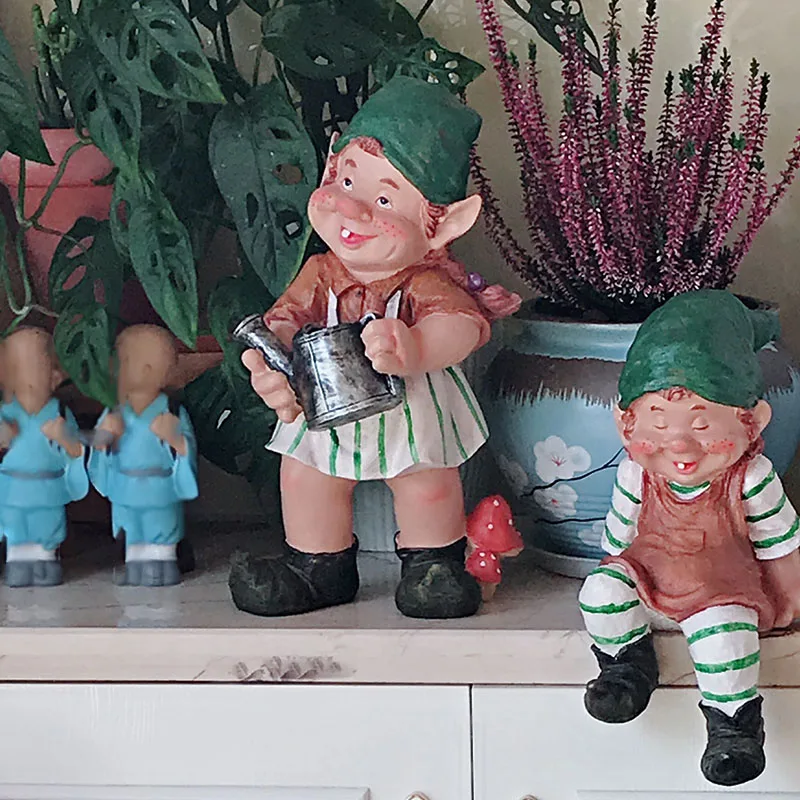 ORIGINAL Home Garden Decoration Outdoor Art Resin Dwarf Holding A Broom Sweeping The Floor Figurine Ornament